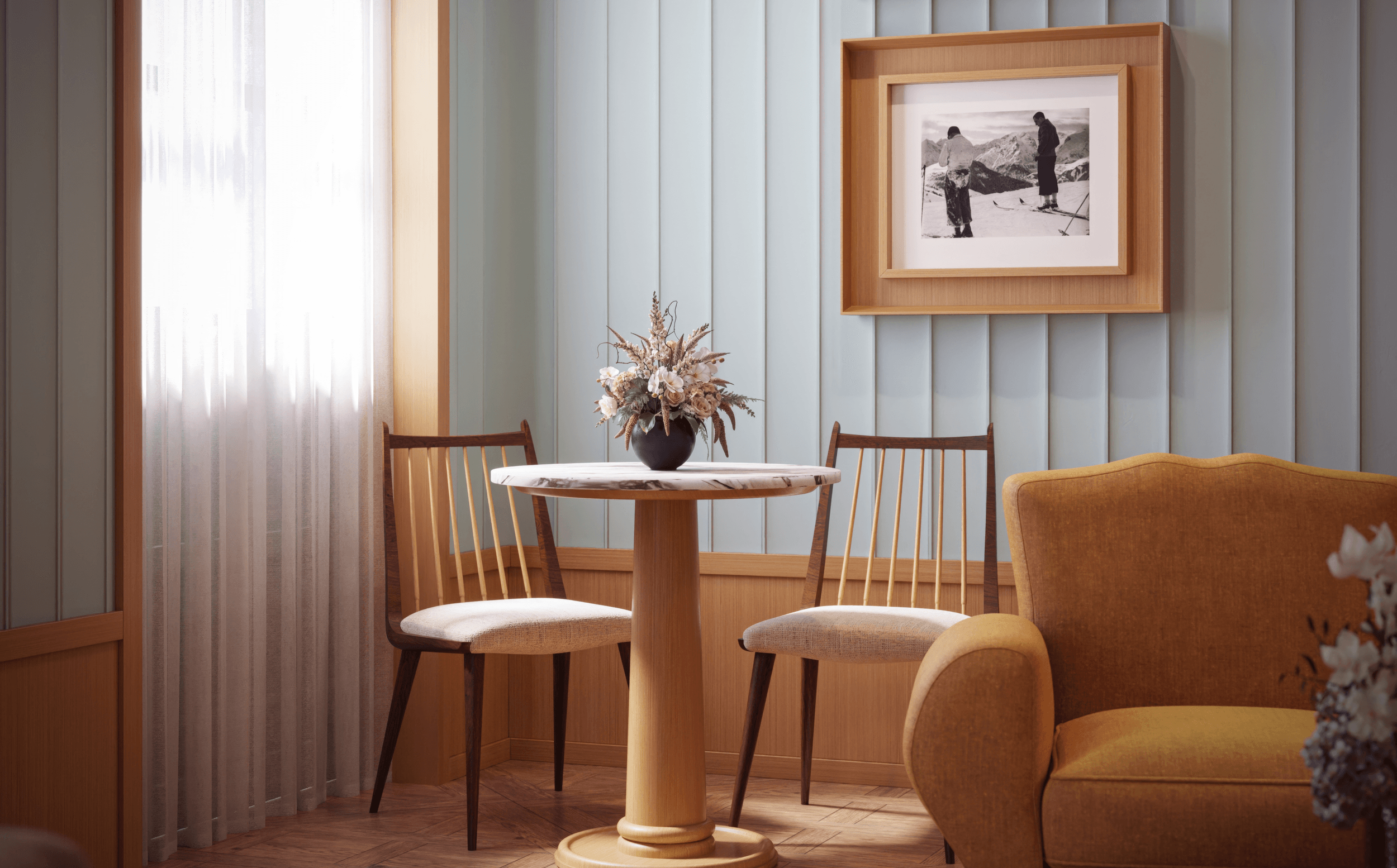 For those seeking an even more intimate dimension, the entire fourth floor may be reserved for exclusive use - designed for a family or a circle of friends. Each room retains its independent entrance, while a discreet private doorway transforms the level into a secluded residence, where togetherness and privacy coexist in perfect balance.